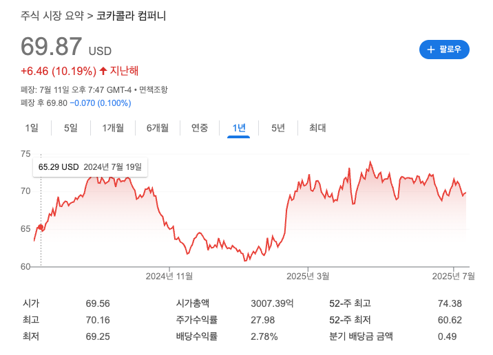 • 현재 주가: 69.87달러 (2025년 7월 13일 기준)