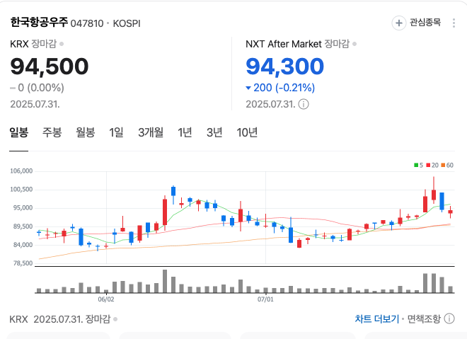 - 7월 30일: 전일 대비 -6.07% 급락 (9만4천원 수준)