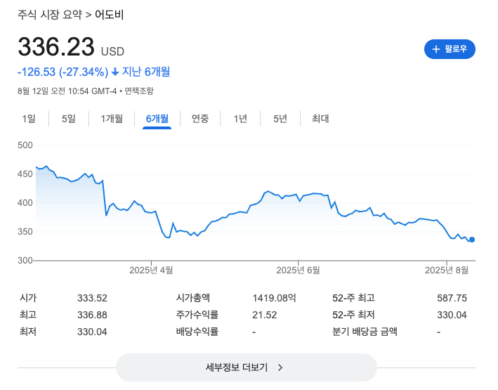 어도비 주가 차트 출처. 구글