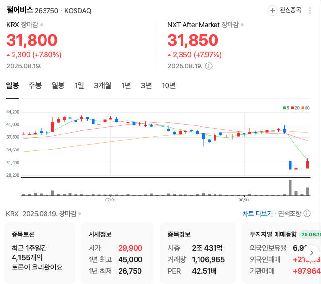 메리츠증권, 펄어비스 ‘지금이 매수 타이밍’ 이유는? (18) | 2025.08.26 |