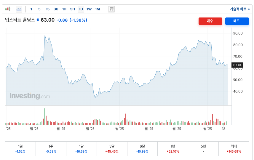 업스타트 일봉차트 출처. Investing.com