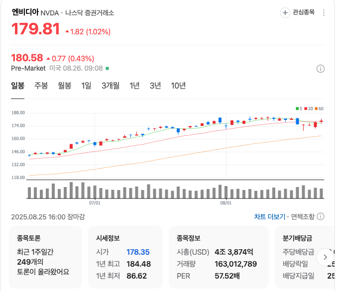 엔비디아 일봉차트 출처. 네이버페이증권
