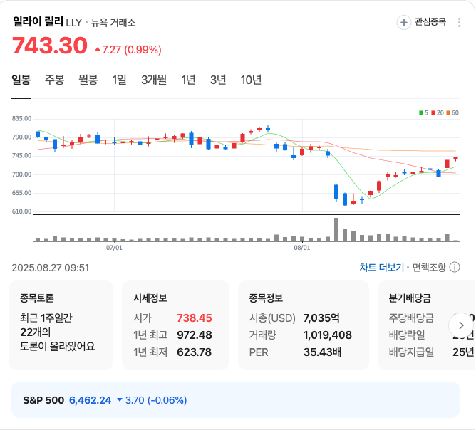 일라이일리 일봉차트 출처. 네이버페이증권