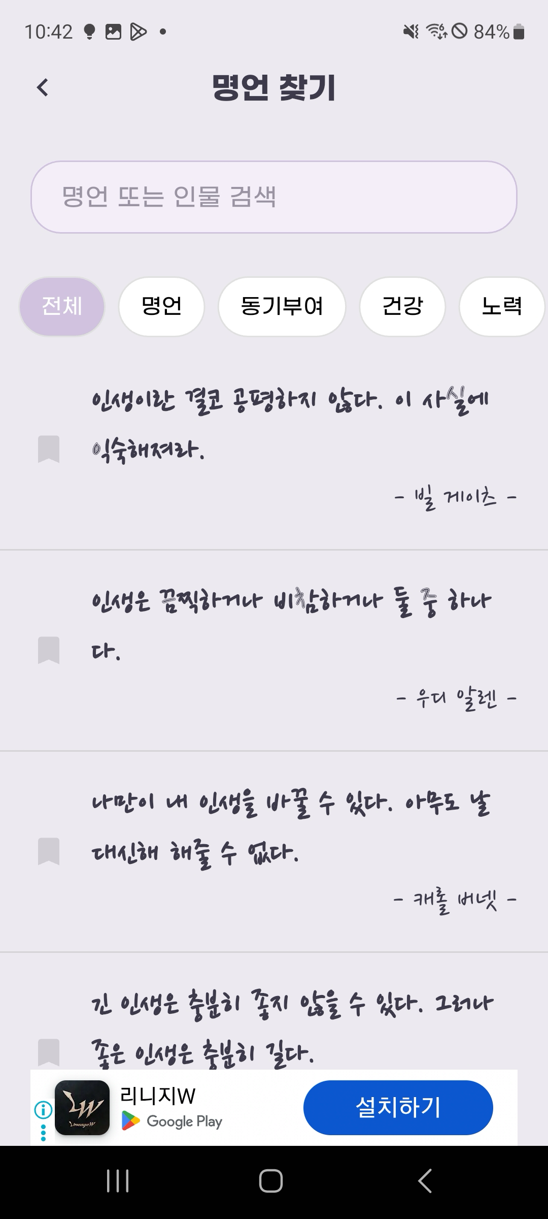 어느새 버스에서, 식사 중에, 일하는 중간에 명언을 보는 것이 일상이 되었고,