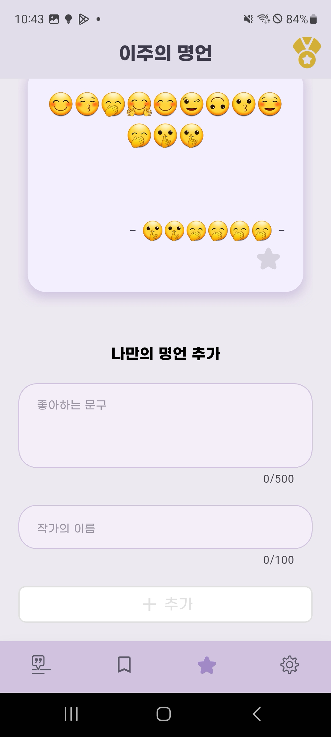 제가 생각하기에 명언 앱의 꽃은 바로 마음에 드는 문장 저장 기능입니다.