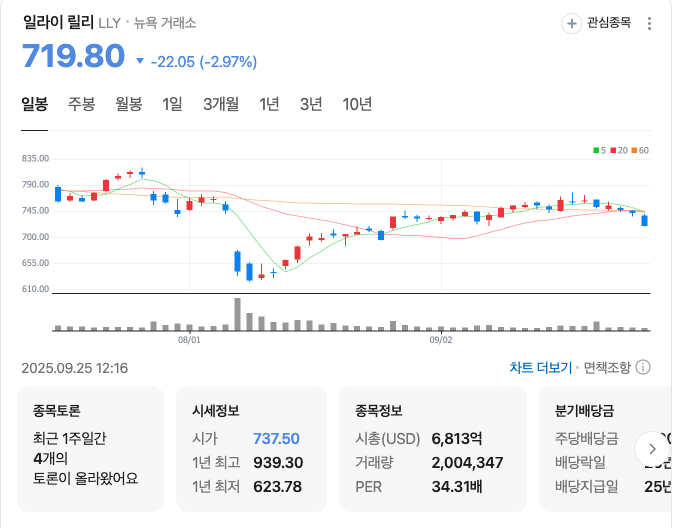 | 제약 업계 최고의 라이벌전! 일라이릴리 vs 노보노디스크, 2025년 7월 투자 전망과 미래 대결 (11) | 2025.07.14 |